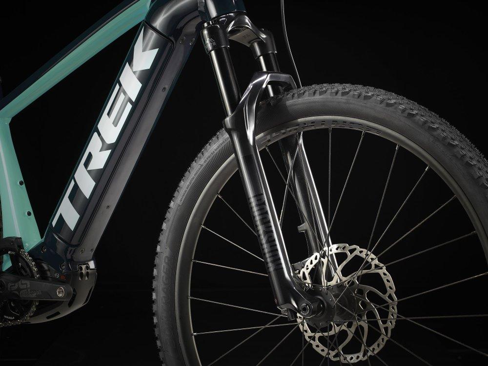 Einen robusten Aluminiumrahmen mit ausdauerndem, 625 Wh starkem Akku, der für eine elegante Optik und optimalen Schutz auf dem Trail vollständig integriert ist, einen neuen Bosch Performance CX Motor zur Tretunterstützung bis 25 km/h und einen ergonomischen Kiox-Controller. Dazu gibt es eine RockShox 35 Gold RL-Federgabel, einen 1x12-Antrieb von Shimano, hydraulische 4-Kolben-Scheibenbremsen, Bontrager Line Comp 30 Tubeless Ready-Laufräder und eine Variosattelstütze.