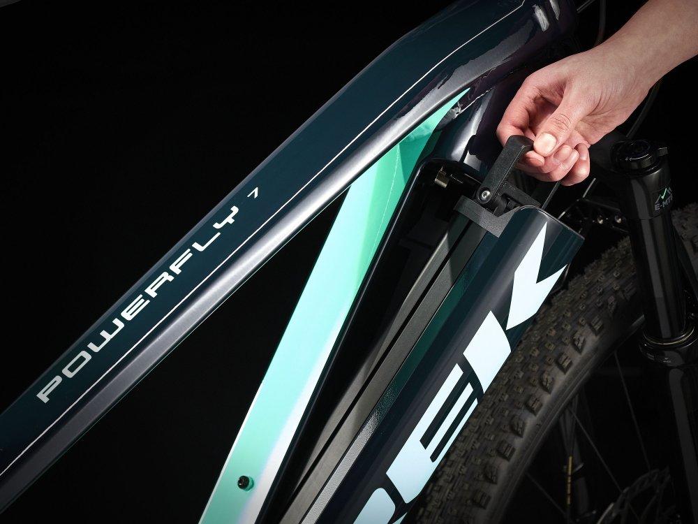 - Treks Removable Integrated Battery System (RIB) sieht gut aus und ist benutzerfreundlich: Der Akku ist komplett im Rahmen integriert und somit bestens geschützt, lässt sich ohne Werkzeuge aber ganz einfach entnehmen und bietet Platz für einen Flasche
