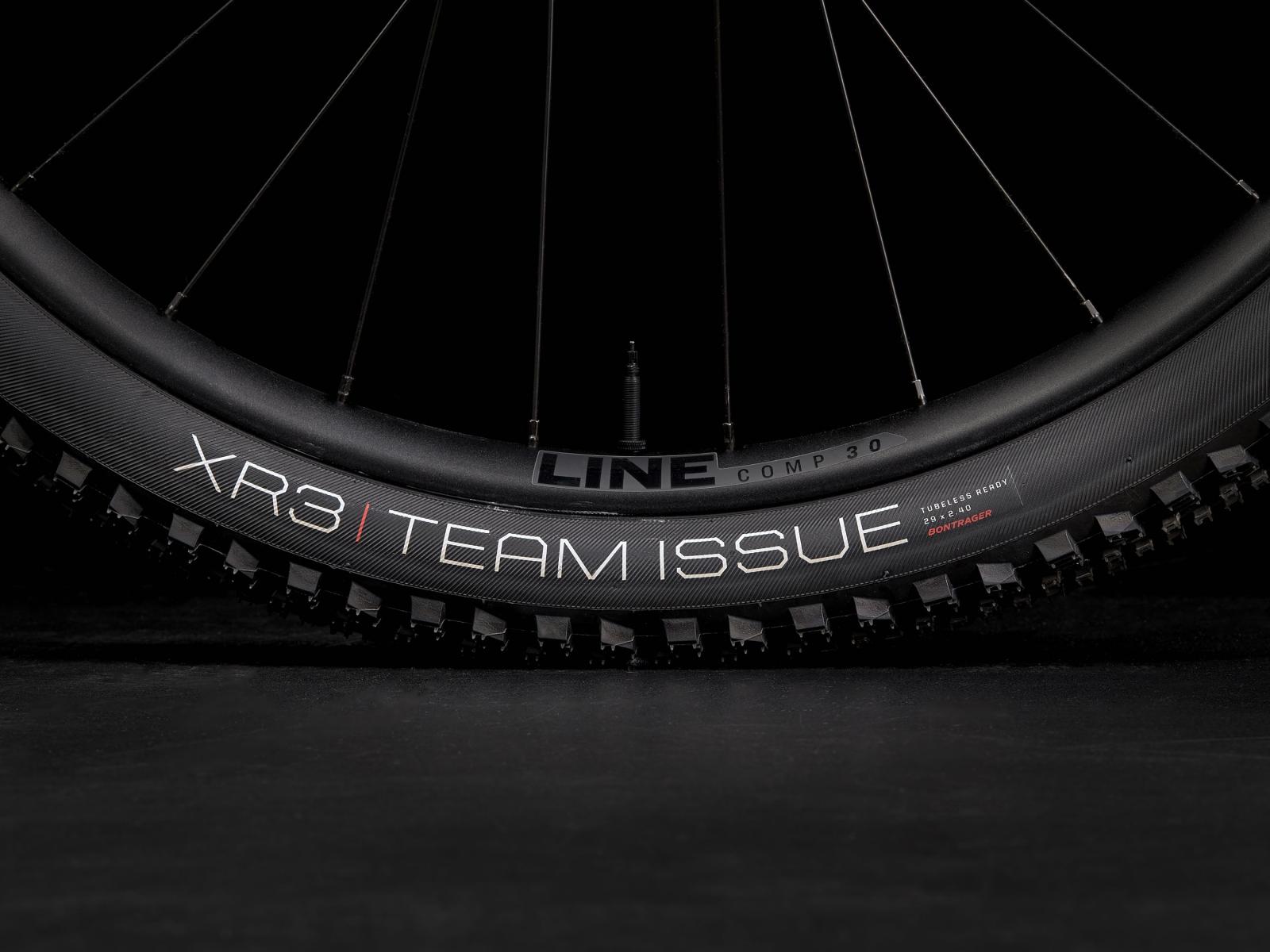 Reifen: Bontrager XR3 Team Issue, Tubeless Ready, Inner Strength-Flankenschutz, Aramidwulstkern, 120 TPI, 27.5 x 2.35