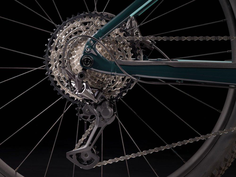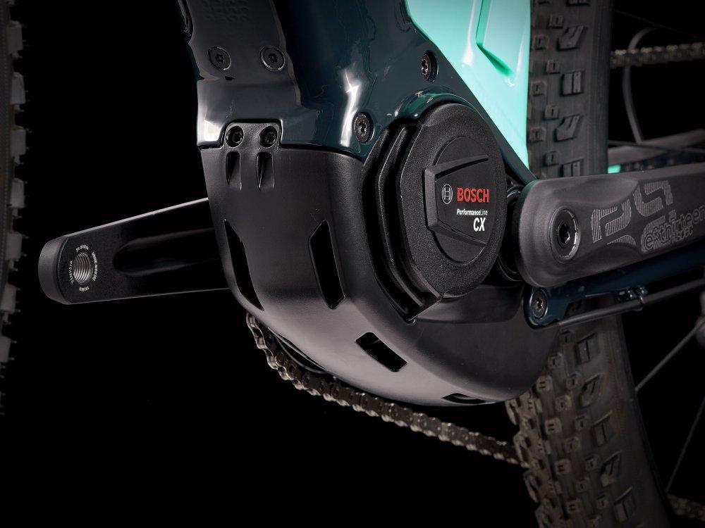 Einen robusten Aluminiumrahmen mit ausdauerndem, 625 Wh starkem Akku, der für eine elegante Optik und optimalen Schutz auf dem Trail vollständig integriert ist, einen neuen Bosch Performance CX Motor zur Tretunterstützung bis 25 km/h und einen ergonomischen Kiox-Controller. Dazu gibt es eine RockShox 35 Gold RL-Federgabel, einen 1x12-Antrieb von Shimano, hydraulische 4-Kolben-Scheibenbremsen, Bontrager Line Comp 30 Tubeless Ready-Laufräder und eine Variosattelstütze.