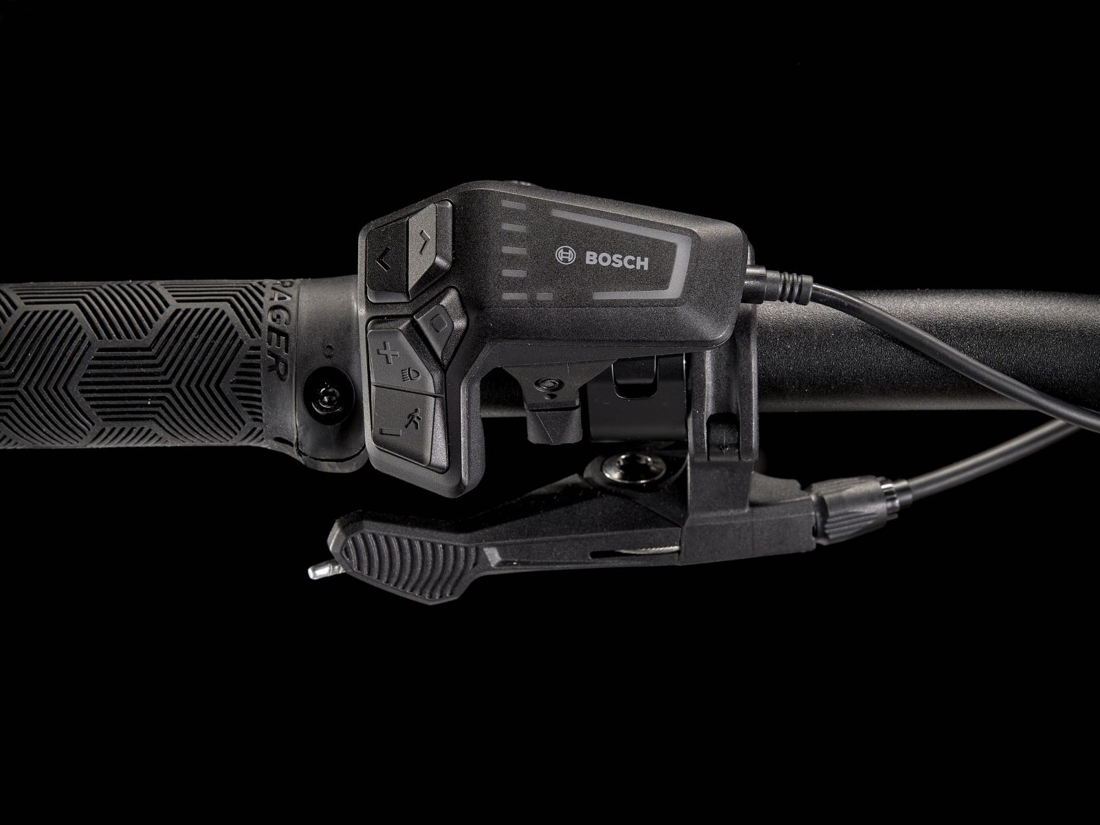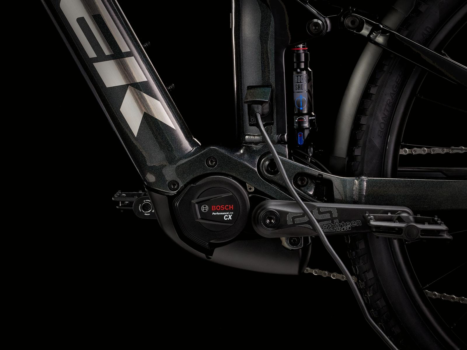 Einen robusten Aluminiumrahmen mit vollständig integriertem und ausdauerndem 625-Wh-Akku, ein leistungsstarkes Bosch Performance CX-Antriebssystem mit 250 W Leistung und 85 Nm Drehmoment für eine Tretunterstützung bis 25 km/h und eine Smart System LED Remote und ein Kiox-Display. Dazu gibt es eine RockShox Gold RL-Gabel mit 120 mm Federweg, einen RockShox SID Luxe Select+-Dämpfer mit 100 mm Federweg, kraftvolle hydraulische 4-Kolben-Scheibenbremsen, Bontrager Line Comp 30-Laufräder, einen 12x-Antrieb von Shimano und eine Variosattelstütze.