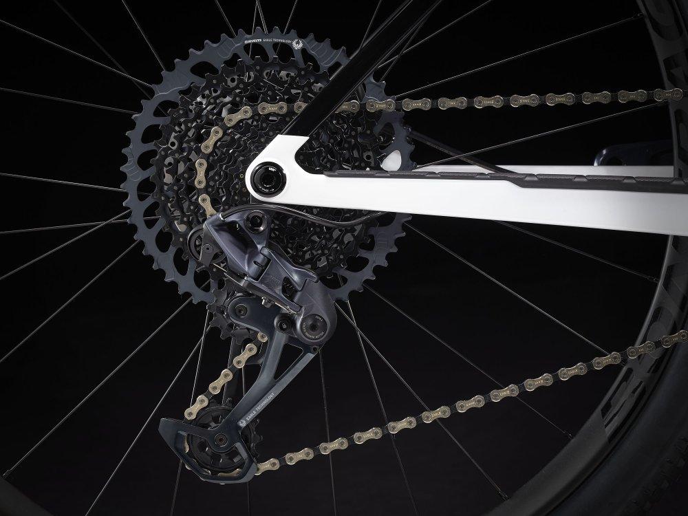 Einen leichten und steifen Carbonrahmen mit trailglättendem IsoSpeed, eine leichte RockShox Reba RL-Federgabel mit Solo Air-Feder, Motion Control-Dämpfung und Remote-Lockout. Dazu gibt es einen SRAM GX Eagle-Antrieb mit extrabreitem Übersetzungsbereich, schnell rollende 29-zöllige Bontrager Kovee Elite 23-Carbonlaufräder und eine Carbonsattelstütze.