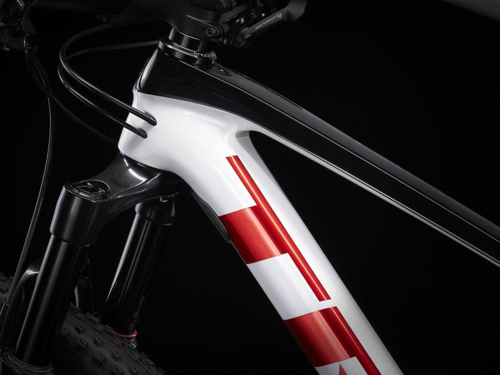 Einen leichten und steifen Carbonrahmen mit trailglättendem IsoSpeed, eine leichte RockShox Reba RL-Federgabel mit Solo Air-Feder, Motion Control-Dämpfung und Remote-Lockout. Dazu gibt es einen SRAM GX Eagle-Antrieb mit extrabreitem Übersetzungsbereich, schnell rollende 29-zöllige Bontrager Kovee Elite 23-Carbonlaufräder und eine Carbonsattelstütze.