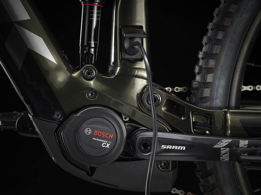 Einen robusten Aluminiumrahmen mit komplett integriertem, 625 Wh starkem Akku, eine schnell ansprechende RockShox ZEB-Federgabel mit bulligen 38-mm-Standrohren und umfangreichen Verstellmöglichkeiten, einen RockShox Super Deluxe Ultimate-Dämpfer mit überarbeiteter Thru Shaft-Dämpfung, einen Bosch Performance Line CX-Motor mit 250 Watt Leistung und 85 Nm Drehmoment zur Tretunterstützung bis 25 km/h und einen Kiox-Controller. Außerdem bekommst du einen SRAM GX Eagle-Antrieb samt extragroßem Klettergang mit 52 Zähnen, 4-Kolben-Scheibenbremsen für erbarmungslose Downhills und 29 Zoll große Bontrager Line Comp 30-Laufräder mit robust