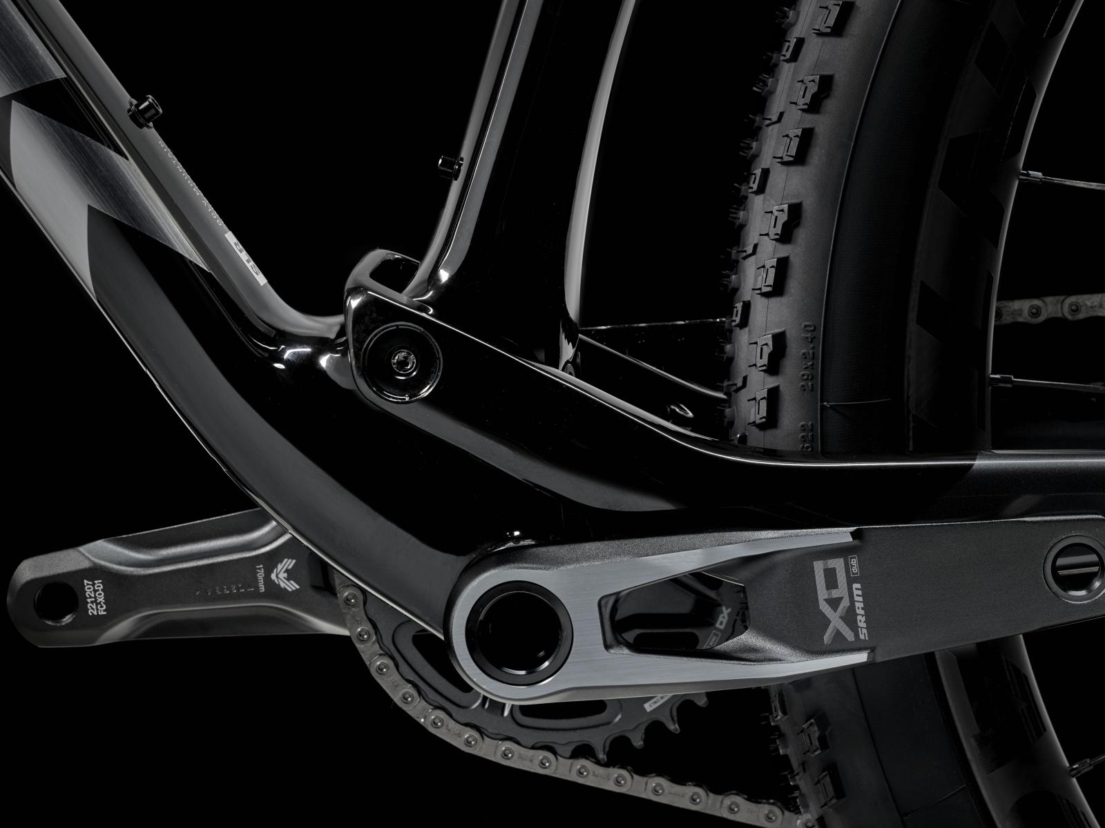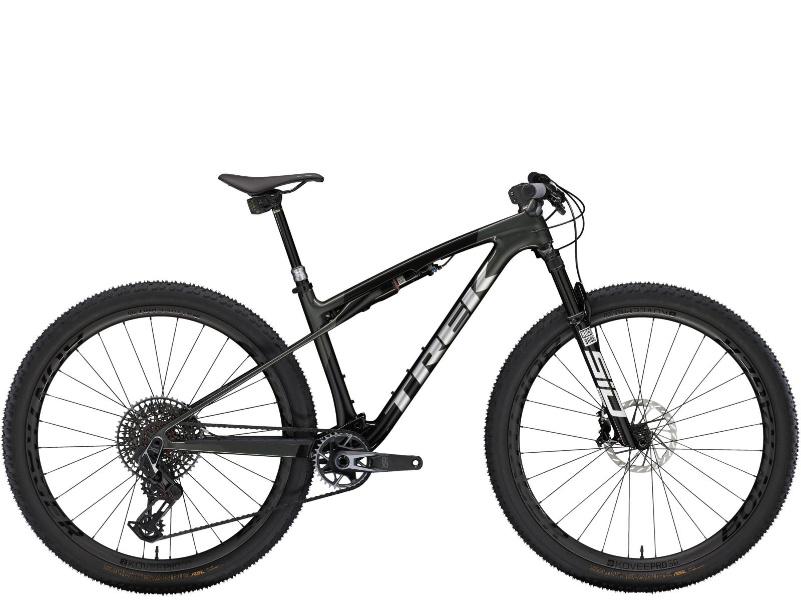 Einen federleichten Rahmen aus High-Modulus SLR OCLV Mountain Carbon mit moderner XC-Geometrie. Außerdem eine RockShox SID Ultimate 110-mm-Federgabel mit DebonAir-Federung und Charger Race Day Dämpfung und einen RockShox SIDLuxe IsoStrut 80-mm-Hinterbaudämpfer – natürlich inklusive Remote-Lockout. Eine komplett drahtlose elektronische SRAM X0 AXS 12fach-Transmission, Bontrager Kovee Pro 30 Carbonlaufräder, eine integrierte Bontrager RSL Lenker/Vorbau-Einheit aus Carbon, eine RockShox Reverb AXS Variosattelstütze und hydraulische SRAM Level Silver 4-Kolben-Scheibenbremsen.