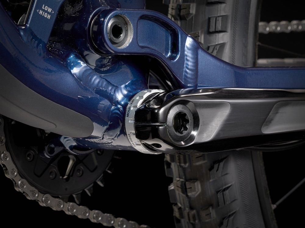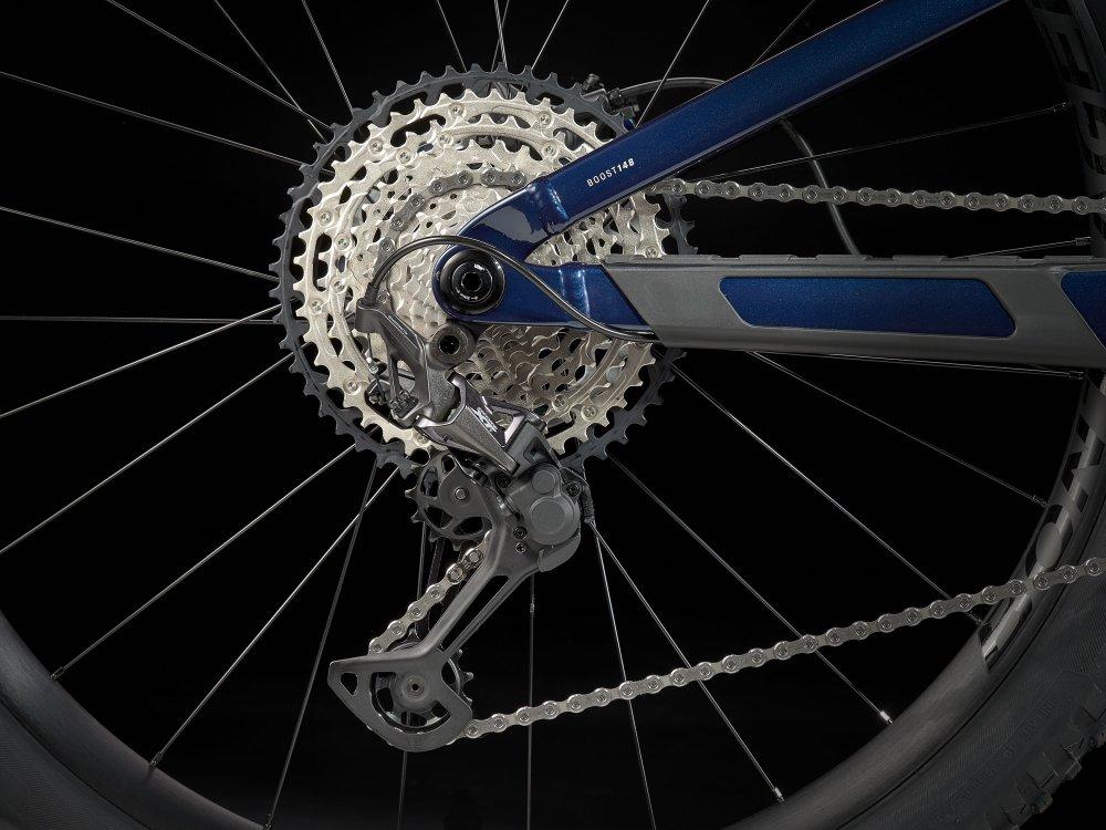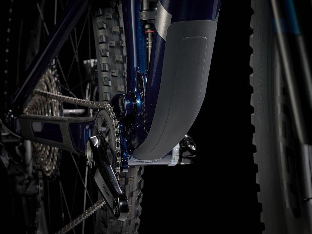 Einen leichten Aluminiumrahmen mit internem Staufach, eine RockShox SID-Gabel mit 120 mm Federweg und geschmeidig ansprechender DebonAir-Feder, einen FOX Performance Float-Dämpfer mit 120 mm Federweg und einen Shimano XT-Antrieb. Dazu gibt es 4-Kolben-Scheibenbremsen für kontrollierte Abfahrten, Bontragers komplett schlauchlose Line Comp 30-Laufräder samt Dichtmittel und Bontragers Line-Variosattelstütze.