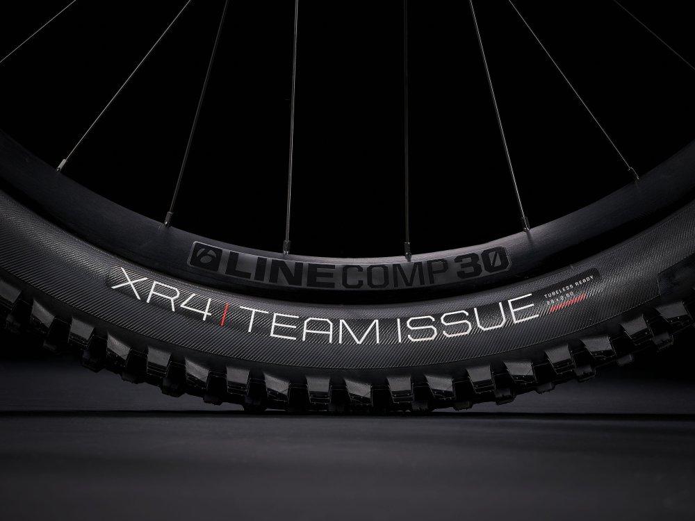 Einen leichten Aluminiumrahmen mit internem Staufach, eine RockShox SID-Gabel mit 120 mm Federweg und geschmeidig ansprechender DebonAir-Feder, einen FOX Performance Float-Dämpfer mit 120 mm Federweg und einen Shimano XT-Antrieb. Dazu gibt es 4-Kolben-Scheibenbremsen für kontrollierte Abfahrten, Bontragers komplett schlauchlose Line Comp 30-Laufräder samt Dichtmittel und Bontragers Line-Variosattelstütze.