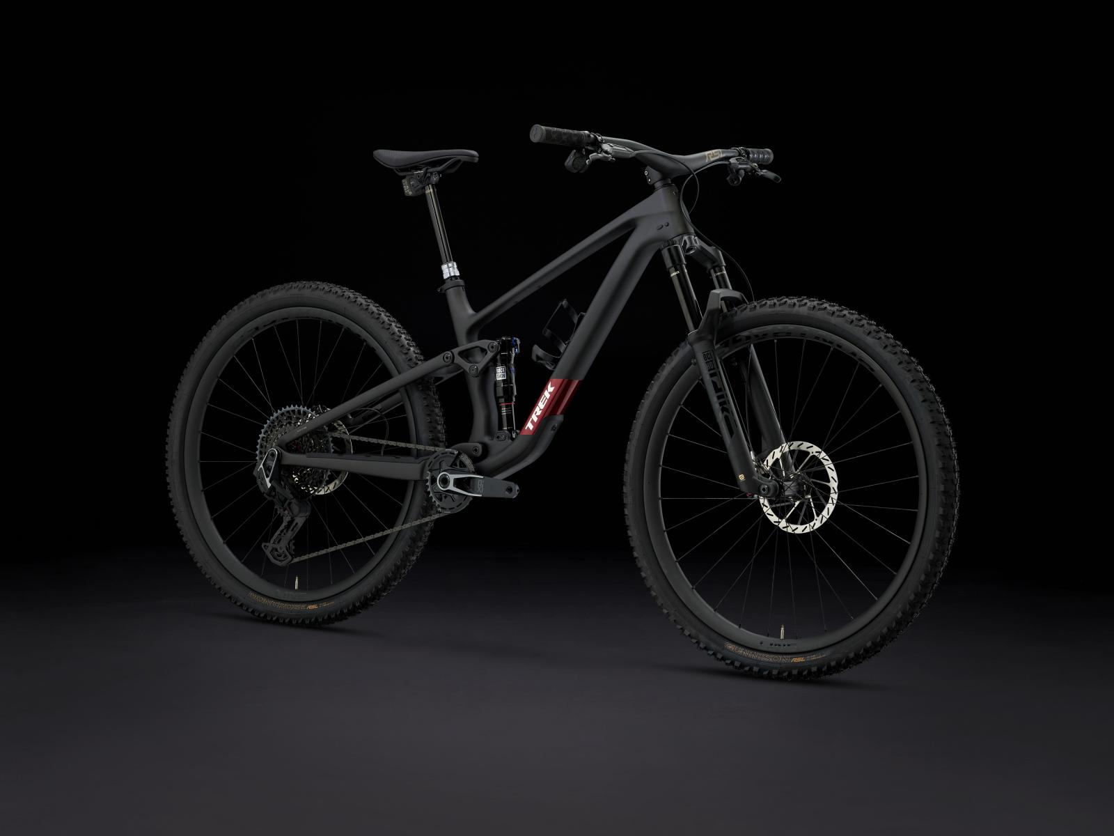 Einen Rahmen aus OCLV Mountain Carbon mit vierfach verstellbarem Mino Link an der unteren Dämpferaufnahme zur Feinanpassung der Rahmengeometrie und des Hebelverhältnisses des Fahrwerks. Eine RockShox Pike Ultimate Gabel mit 130 mm Federweg, DebonAir Luftfeder und Charger 3.1 RC2 Dämpfung sowie einen RockShox Deluxe Ultimate RCT Hinterbaudämpfer mit 120 mm Federweg. Abgerundet wird die Ausstattung von einer drahtlosen SRAM X0 AXS Transmission, hydraulischen SRAM Level Silver Stealth 4-Kolben-Scheibenbremsen, einer RockShox Reverb AXS-Variosattelstütze und Bontrager Line Pro 30 Tubeless-Ready-Carbonlaufrädern.